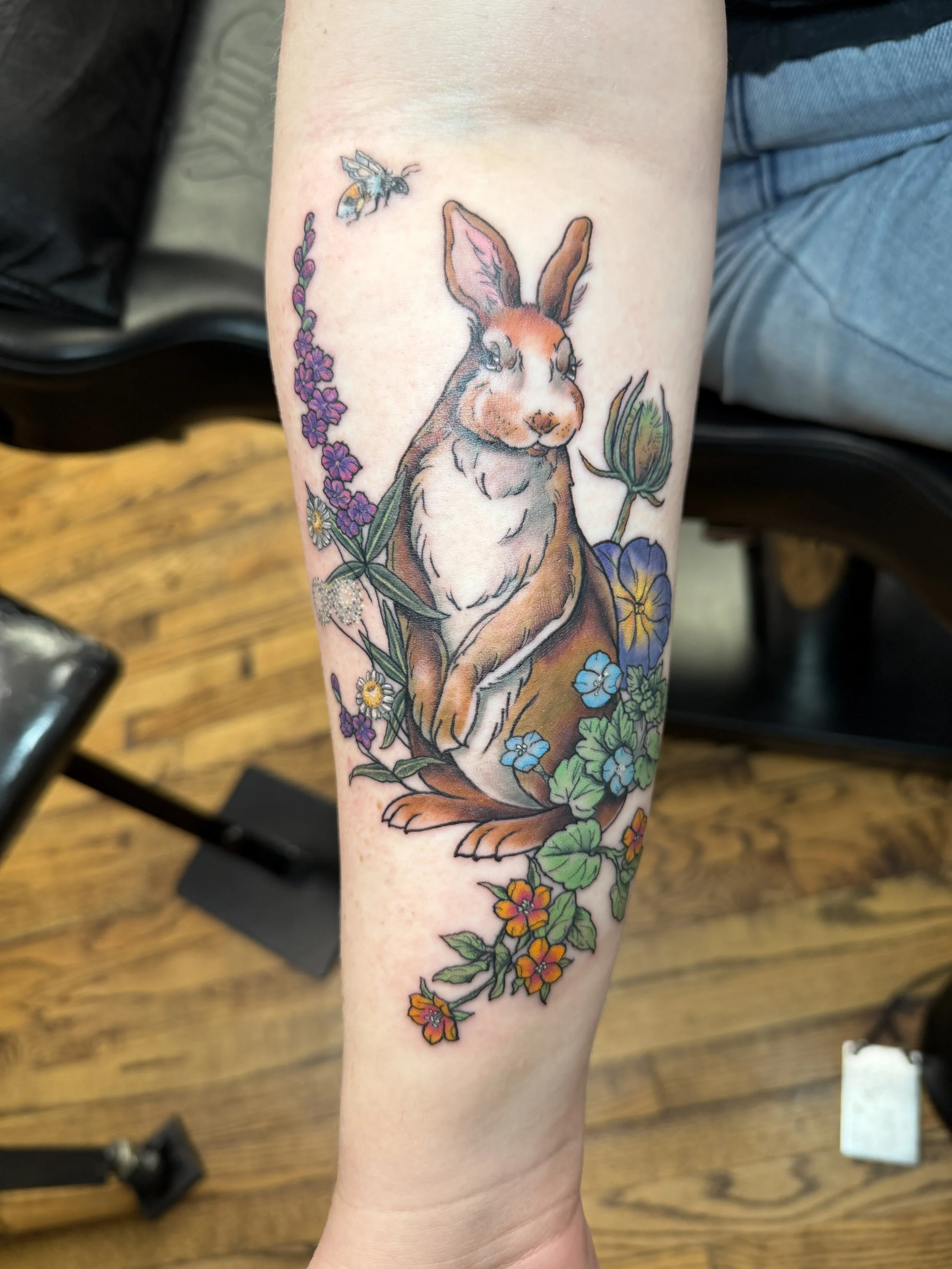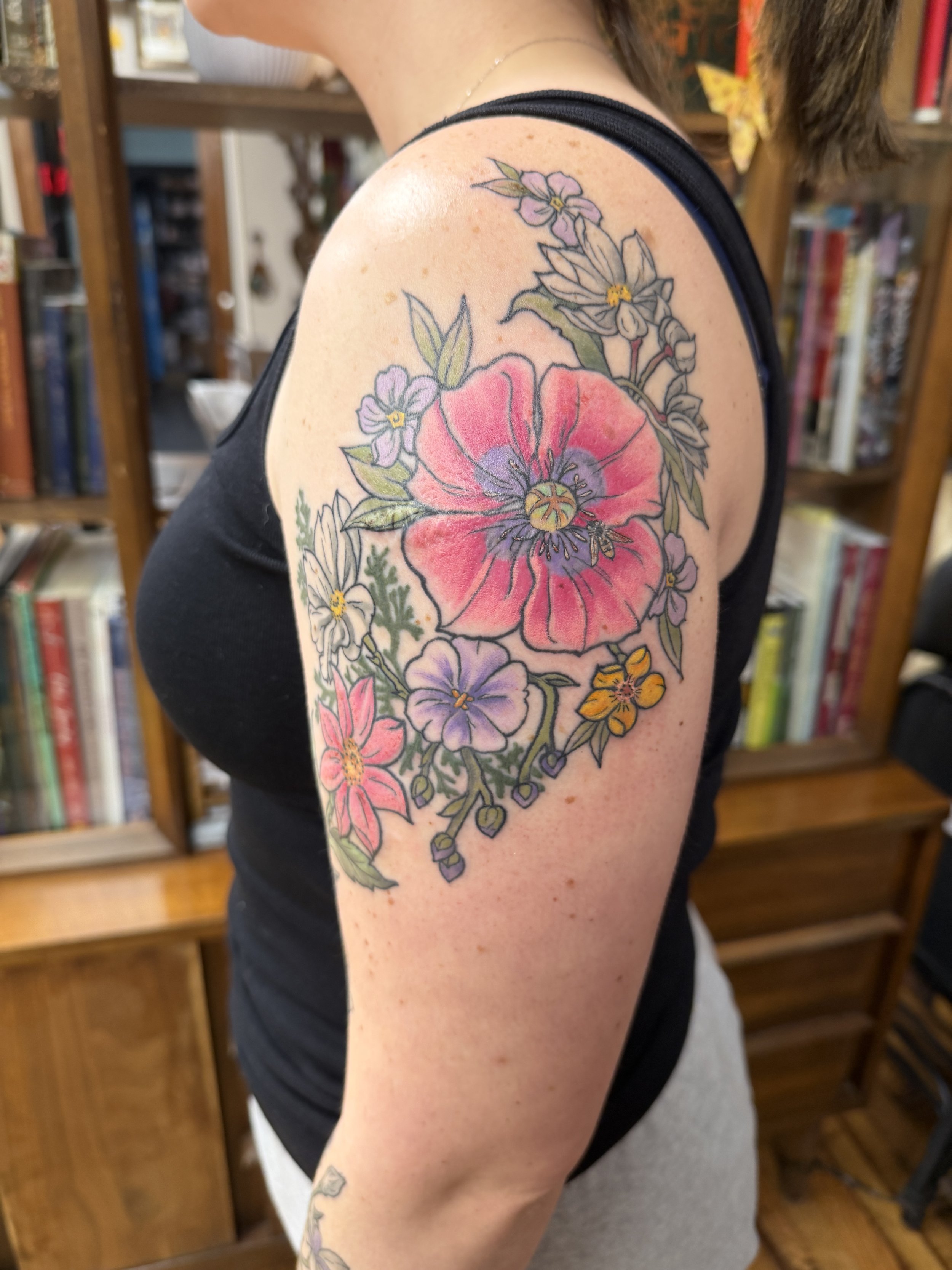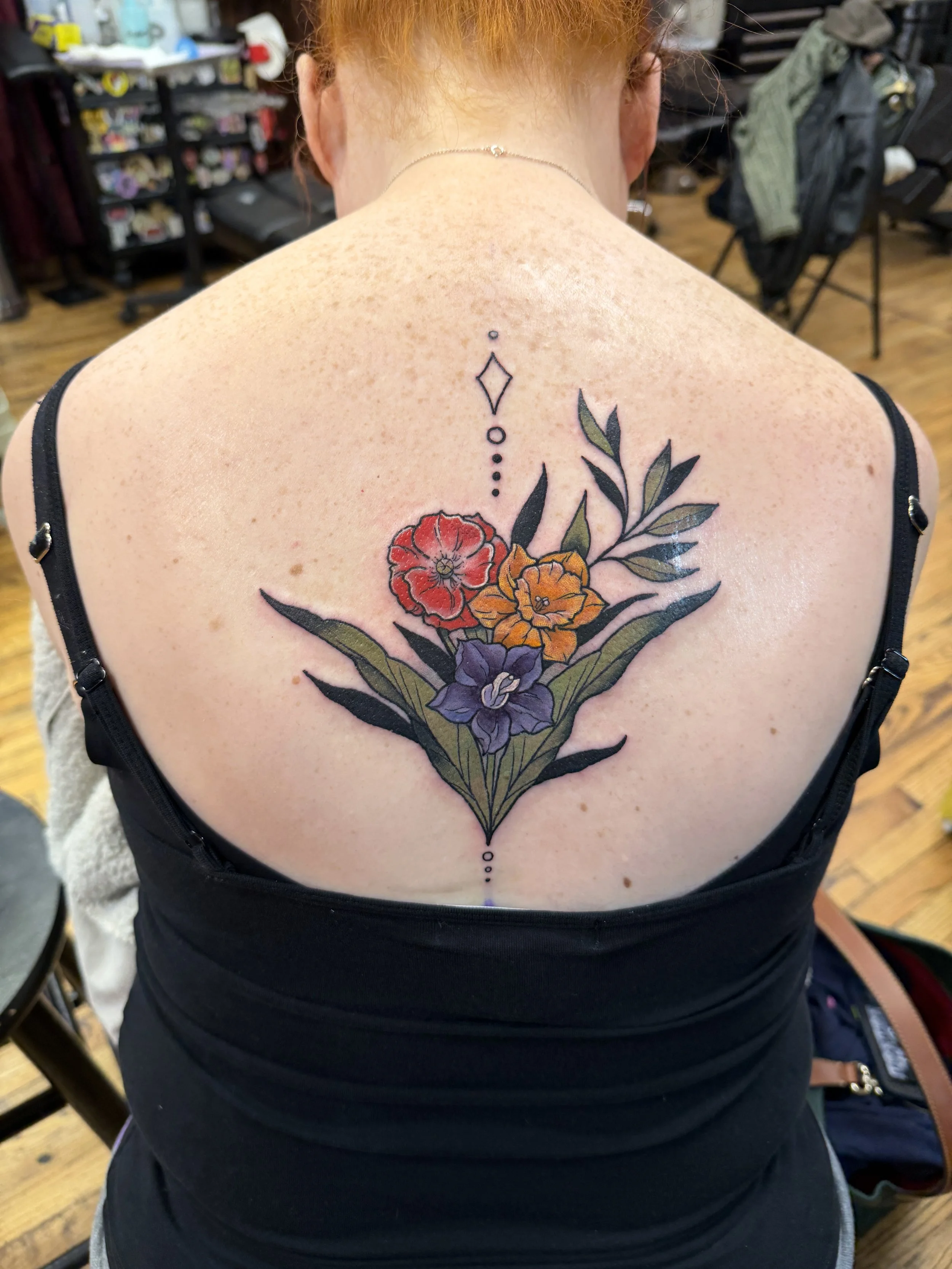 Sara Eve has studied tattooing for over 15 years and tattooed for over 9 of those years. They specialize in ‘American Traditional’, Illustrative, Botanical as well as Cover up tattoos. Sara Eve strives to provide a respectful and open art space for their coworkers and clients alike <3